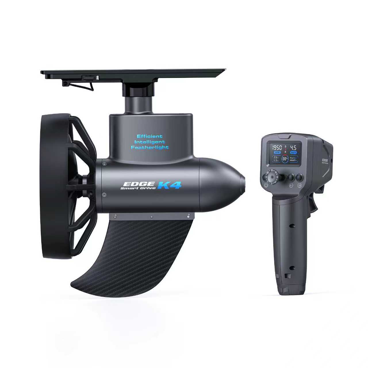 Edge K4 styres med en trådløs Bluetooth-fjernkontroll som enkelt festes på åren, håndleddet eller vesten. Her kan du justere hastigheten trinnløst og aktivere cruise control.